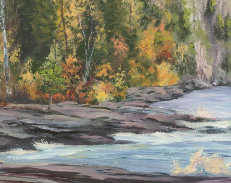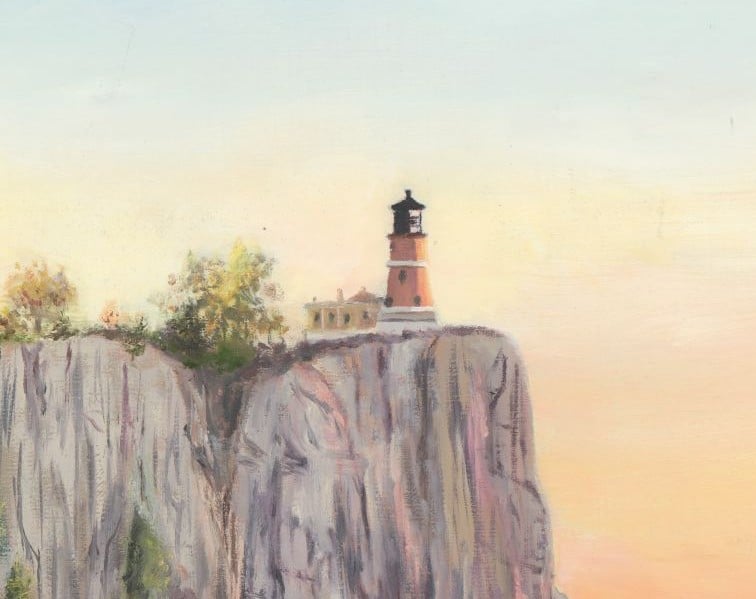 ππ°ππ₯π¦π― ππ©π°π³π¦ is my 16x20 original painting featuring the beautiful fall colors along Minnesota's North Shore as the sun rises. Split Rock Lighthouse, an iconic landmark of the North Shore perches high on the cliff as waves crash below.